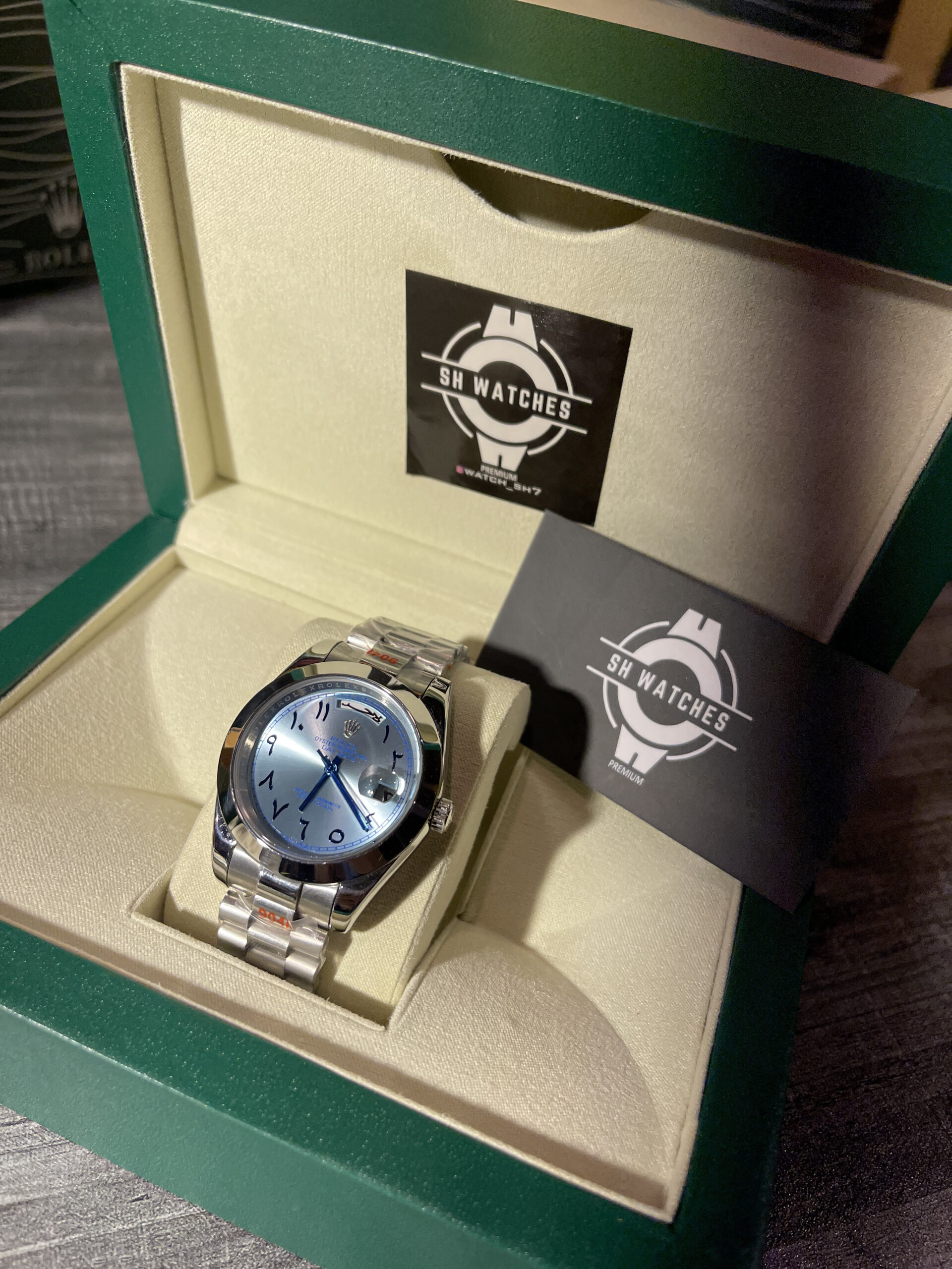 Experience timeless sophistication with this Rolex Arabic Dial edition. Featuring a bold Arabic numeral dial, sapphire glass for exceptional scratch resistance, and premium finishing, this master copy reflects the elegance of true Swiss design.