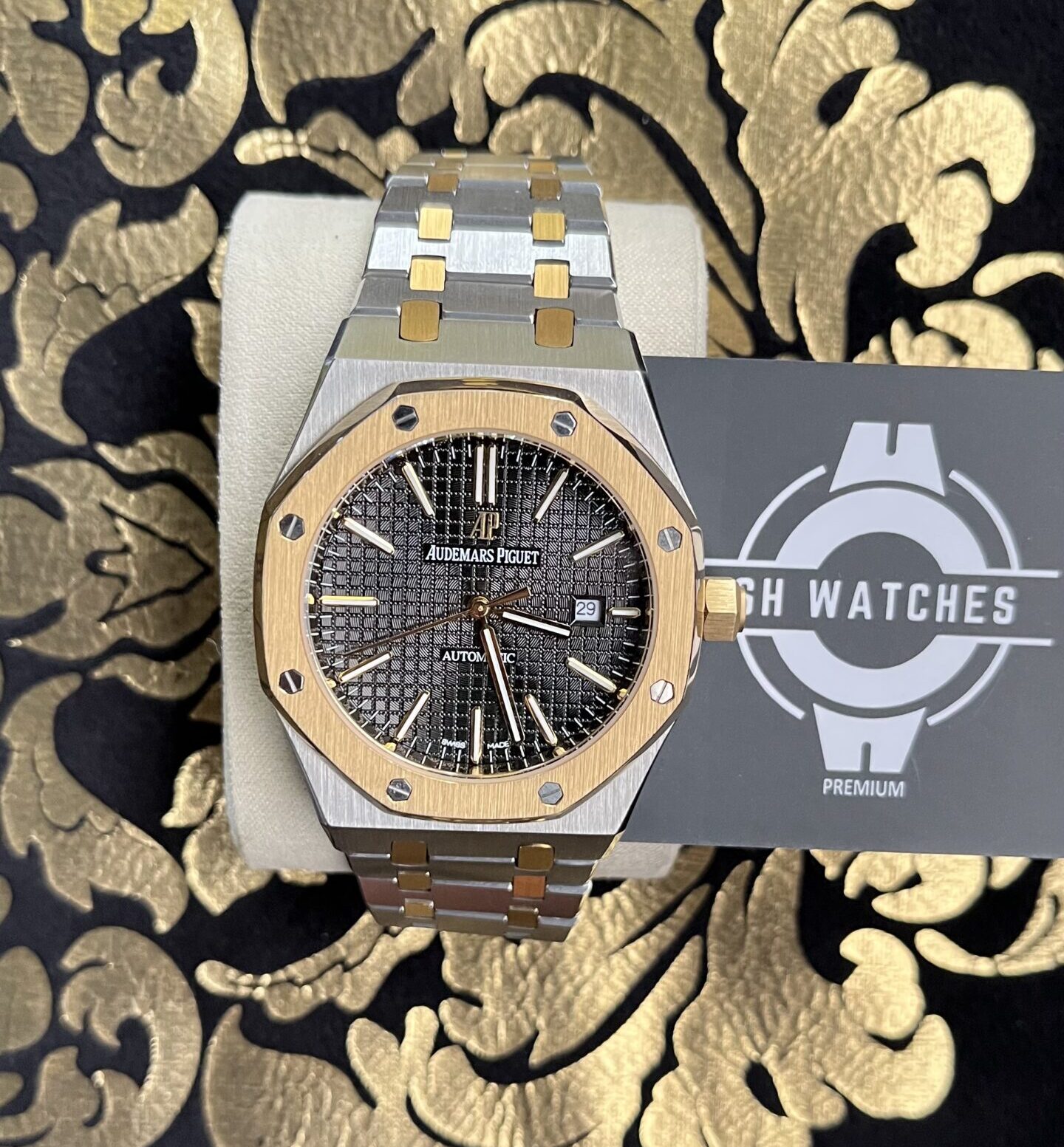 A statement of prestige and craftsmanship, the Royal Oak Two-Tone Masterpiece blends steel and gold tones in the iconic octagonal design. Finished with sapphire glass and fine detailing, this master copy brings the elegance and bold presence of Audemars Piguet into a timeless everyday luxury watch.