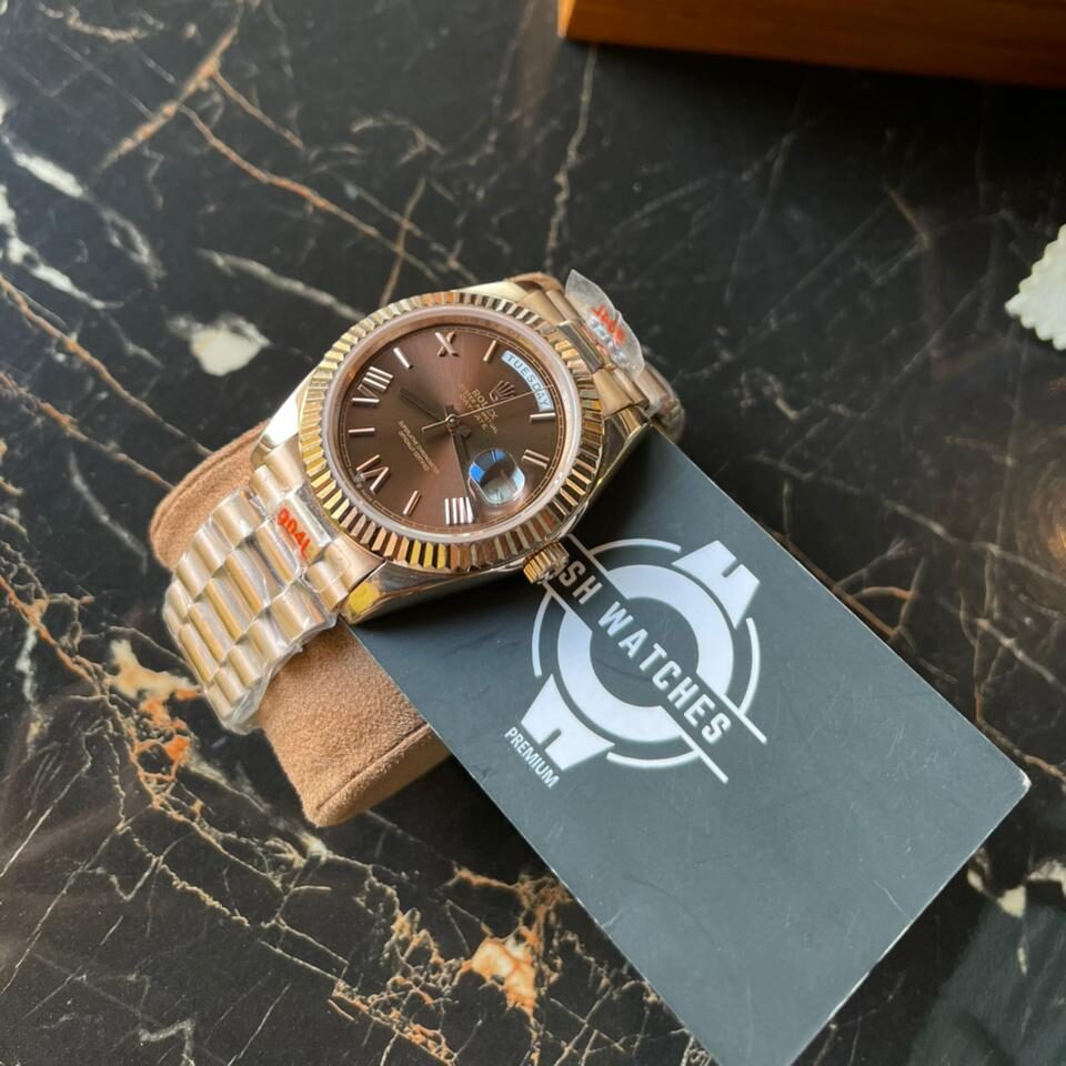 The Rolex Day-Date is one of the most prestigious timepieces in the Rolex collection. Introduced in 1956, the Day-Date was the first wristwatch to display the full day of the week alongside the date, a feature that has made it a symbol of leadership, achievement, and luxury.